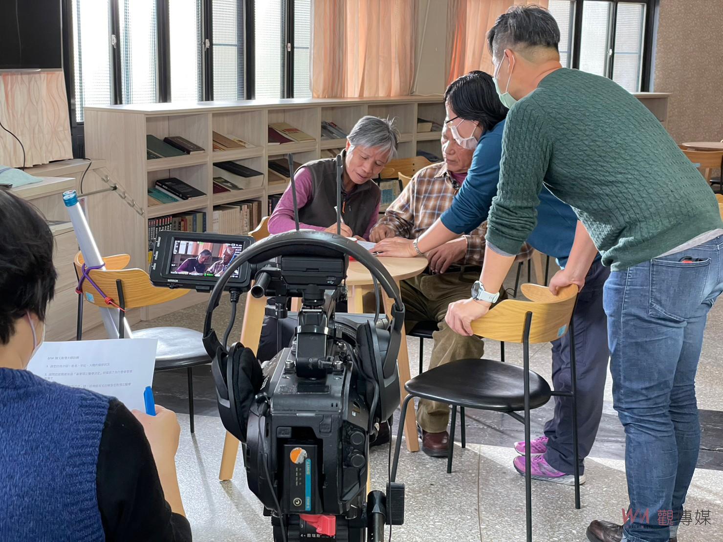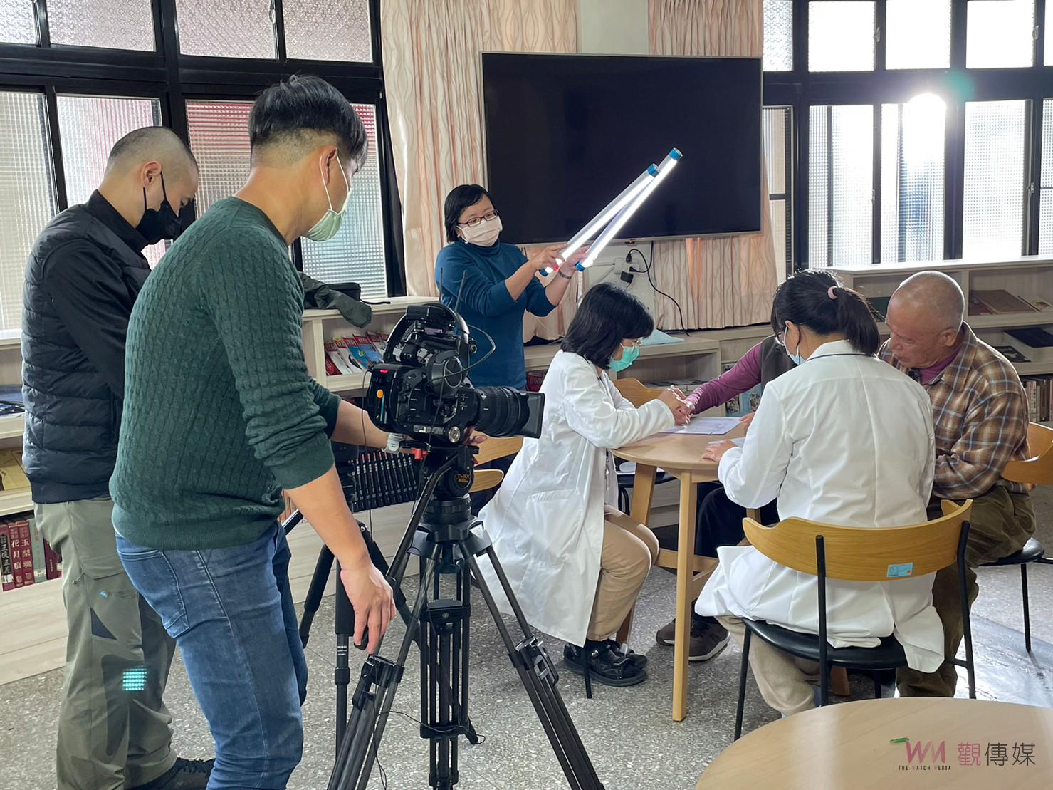 ▲中彰榮家、榮總與三立電視台攜手拍攝全民健保預立醫療紀錄片,拍攝團隊與受訪長輩彩排拍攝流程及協助預立醫療資訊諮詢服務,拍攝團隊也在榮家內取景。