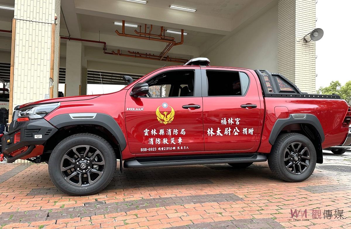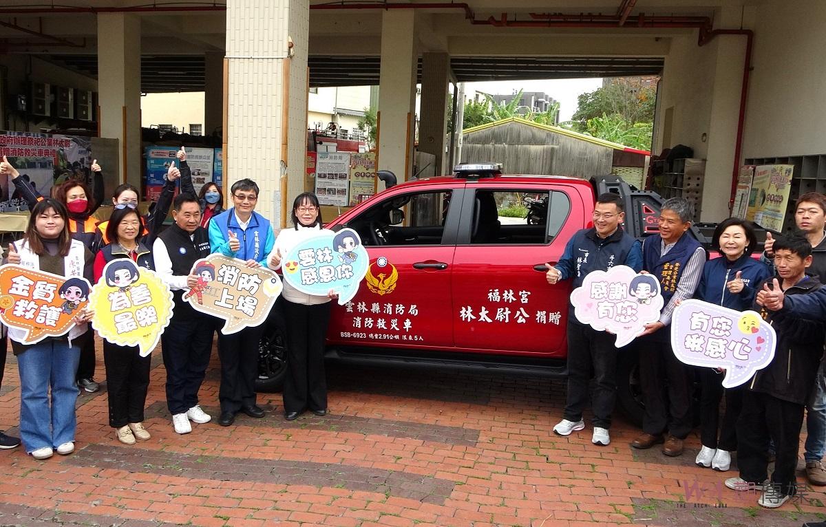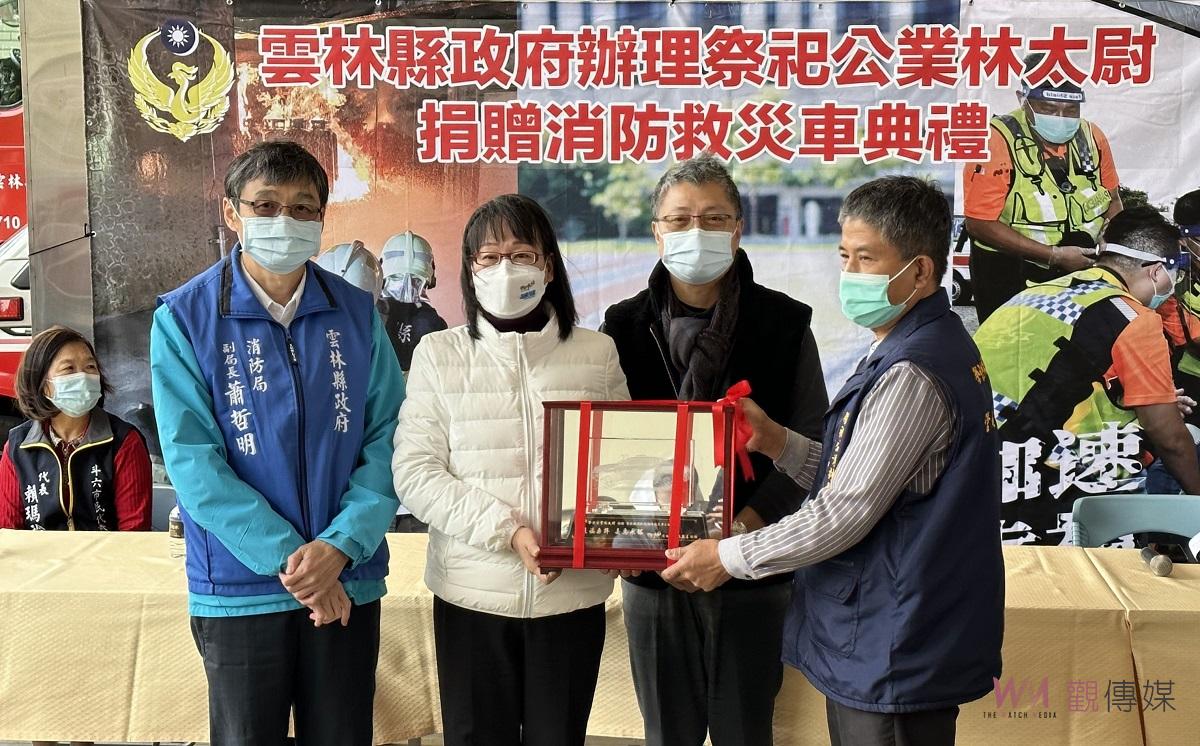 (觀傳媒雲林新聞)【記者蘇榮泉/雲林報導】雲林縣消防局於15日11時假第一大隊斗六分隊一樓車庫辦理「祭祀公業林太尉捐贈消防救災車典禮」,此次捐贈以「林太尉公」之名義捐贈1部TOYATA HILUX消防救災車,以提升消防救災、載送人員及運補物資能量,由祭祀公業林太尉管理委員會管理人林達毅代表捐贈,副縣長謝淑亞代表受贈。