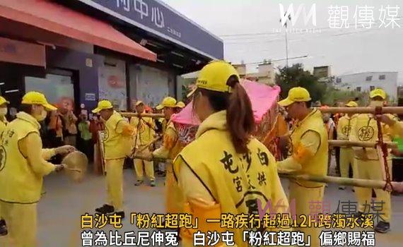白沙屯媽祖「粉紅超跑」今(15)日上午8時許進入泰山廠房巡視,上午8時32分停駕,泰山廠房擺出多箱八寶粥等自家產品招待隨行信眾。接著媽祖進入復興國小賜福,在操場讓小朋友和當地民眾鑽轎底;之後停駕二水安德宮,於近中午時停駕全聯兩次。