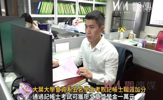 ▲大葉大學會資系廖文章獎學金,獎勵大學期間考取記帳士的同學。