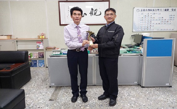 台電嘉義區營業處許墩貴處長今天代表台電前往嘉義市西區公所頒獎,由西區區長柯國振代表領獎。