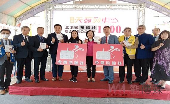 (觀傳媒雲林新聞)【記者洪佳伶/雲林報導】元健天籟列車與北港扶輪社與板橋西區扶輪社聯合北港鎮公所、口湖鄉公所、北港朝天宮、國際獅子會300-D1區2022-2023年度維護聽力及教育行動委員會、中國醫藥大學北港附設醫院、北港仁一醫院、礁溪扶輪社、斗六東區扶輪社、美康藥局、躍獅藥局、杏一醫療用品店等單位共同辦理「助聽器慈善捐贈活動」,今(16)日在北港鎮公所前舉行捐贈,共計捐贈1000台市價1.2萬的國產藍芽助聽器。