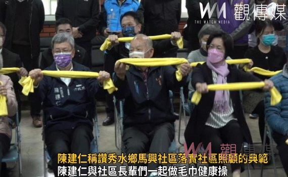(觀傳媒彰化新聞)【記者陳雅芳/彰化報導】行政院長陳建仁今(21)日在彰化縣長王惠美等人陪同下參訪彰化縣秀水鄉馬興社區,了解社區經營模式及各項社會福利推動情形,並與社區長輩們一起做毛巾健康操,他讚美馬興社區有很強烈的社區特色,社區如同一個大家族,是落實社區照顧的典範。