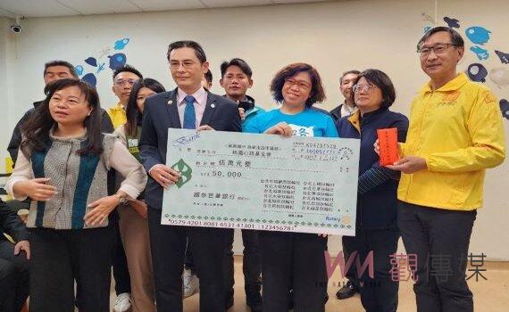 (觀傳媒桃園新聞)【記者潘明賜/桃園報導】熱鬧的白沙屯媽祖遶境活動,連日來吸引數萬人參與行腳,成為今年最大規模的宗教盛會。桃園市立東興國中師生也辦理5天4夜的跟媽祖行百里健走,為遲緩兒募款公益活動,從中壢出發先後參拜苗栗、台中與彰化3縣市16座媽祖廟,為心路基金會桃園分會「慢飛天使」募得善款18萬元(含扶輪社5萬元),今(22)日下午由教育局專門委員林淑芬、彭俊豪等多位市議員與各界人士見證,將善款捐出,加上東興國中家長會當場加碼捐2萬元,一共捐了20萬元,現場掌聲不絕。