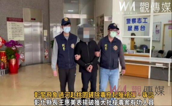 (觀傳媒彰化新聞)【記者陳雅芳/彰化報導】衝撞警車就是不行!彰化縣和美警分局大霞派出所1月底獲報有人疑似吸毒,女所長林詩舫率員前往盤查,卻遭郭嫌駕車衝撞巡邏車,並棄車逃逸,警方佈線緝拿,前天在桃園市觀音區當街攔下郭嫌車子上前緝捕,又到其住處共查獲3枝手槍及60顆子彈、和毒品及現金102萬餘元,彰化縣長王惠美今(22)日表揚破案有功人員。