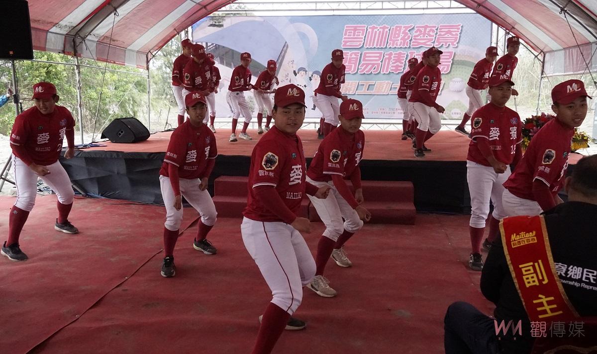 斥資八千多萬元興建的「雲林縣麥寮簡易棒球場」今天開工動土典禮,棒球隊獻上舞蹈。