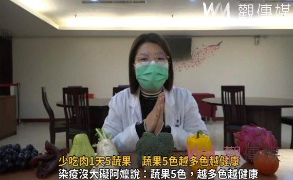 (觀傳媒彰化新聞)【記者陳雅芳/彰化報導】98歲徐姓婦人10多年未就醫看病,感染新冠肺炎住院治療後沒大礙已出院,回診時醫院人員請教長壽秘訣時笑著說,老一輩的人說『著愛減呷肉,加呷菜』,我只是照著做。衛福部彰化醫院營養師吳佩芬說,阿嬤的這句話更如暮鼓晨鐘;至於蔬果要怎麼吃,可以簡單的說,蔬果5色,越多色越健康。