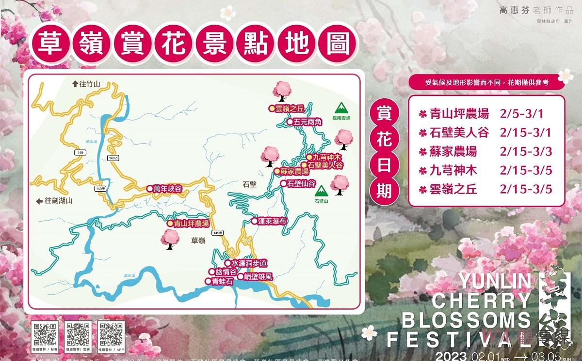 草嶺、石壁櫻花開得非常漂亮,歡迎民眾228連假來雲林賞櫻,順道還可到北港看燈會。