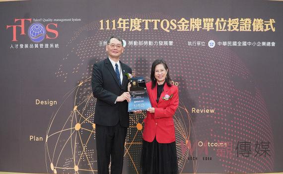 (觀傳媒彰化新聞)【記者陳雅芳/彰化報導】切膚之愛基金會重視人才培育與發展,透過明確的訓練政策,強化員工認知與認同,自民國98年起開始導入勞動部人才發展管理系統,建構系統化的管理,精進人才永續發展價值,榮獲「111年度TTQS人才發展品質管理系統評核」金牌肯定,並創下社福界唯一勇奪10面金牌之紀錄,由勞動部勞動力發展署賴家仁副署長頒獎,詹麗珠執行長代表受獎。