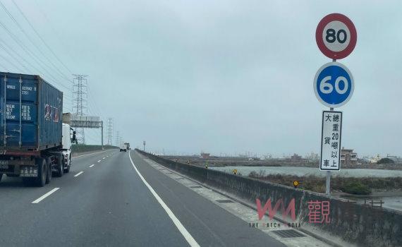 ▲大貨車駕駛注意,20噸以上大貨車行駛台61線西濱快速公路的速限從3月1日起調降為時速80公里,彰化縣警局交通隊呼籲用路人小心駕駛,不要違規超速。