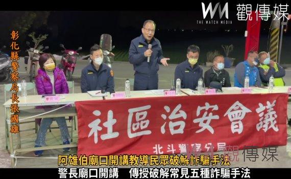 (觀傳媒彰化新聞)【記者陳雅芳/彰化報導】小心有詐!阿雄伯廟口開講,教導民眾破解詐騙手法!彰化縣警察局今年兩個月內阻詐102件,成功為民眾保住8千多萬元血汗錢,警察局長張國雄昨(2)日晚間到溪州鄉圳寮村普玄宮參加社區治安會議,除了請神明護佑地方,也提醒民眾注意交通安全,並說明識詐技巧,傳授常見五種詐騙手法破解之術。