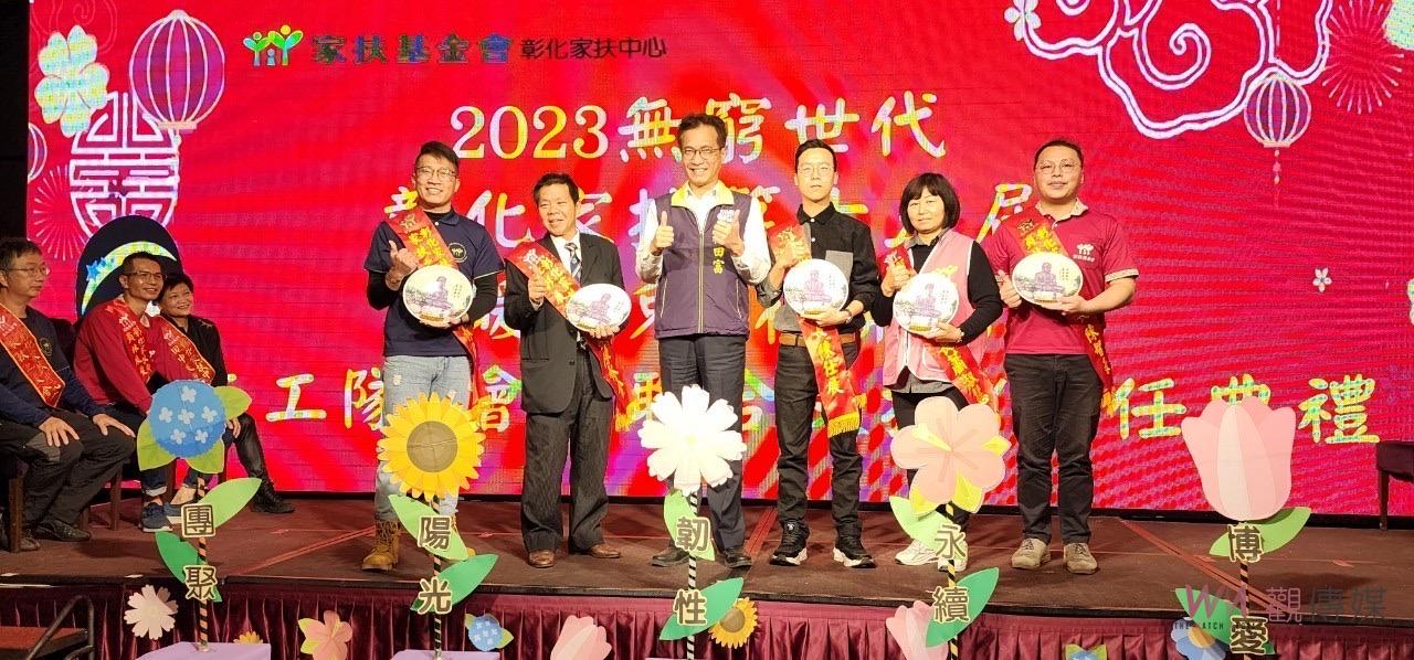 (觀傳媒彰化新聞)【記者陳雅芳/彰化報導】超有愛!彰化家扶中心今(3)日於花壇全國麗園餐廳舉辦「2023彰化家扶第十五屆志工隊/會長聯合交接/續任典禮」,彰化縣副縣長林田富說,志工們總是利用自己的休息時間,協助彰化家扶中心的各項活動,是家扶推動兒少服務工作的強大後盾。今日志工們匯聚一堂,為彼此無私的愛與付出相互給予掌聲及喝采。