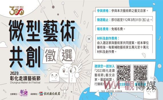 (觀傳媒彰化新聞)【記者陳雅芳/彰化報導】今年度彰化走讀藝術節首推「微型藝術共創」,由參與本次藝術節之藝文店家與藝術家媒合就地方空間共同創作,並由藝文店家提出申請,免報名費,共計徵選5-8件,每案補助藝術家5-10萬元材料及創作費,徵選日期自即日起至3月31日止,歡迎有興趣之藝文店家踴躍報名參加徵選,一起打造藝術節專屬微型藝術共創作品。