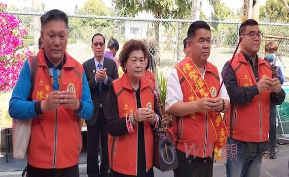 (觀傳媒台南新聞)【記者陳彥霖/台南報導】每年皆吸引千人的「唐忠順王陳聖祖陳姓宗親祭祖暨食祖佛酒餐會」,今(6)日在新化區山腳里頂山仔腳席開百桌,橫跨8個行政區上千名陳姓宗親參加參拜聖祖儀式,場面莊嚴隆重。前台南市社會局局長陳榮枝、市府參議陳明珍、新化區區長吳金喜及市議員李偉智、楊中成等人,共同見證陳姓宗親年度盛會。