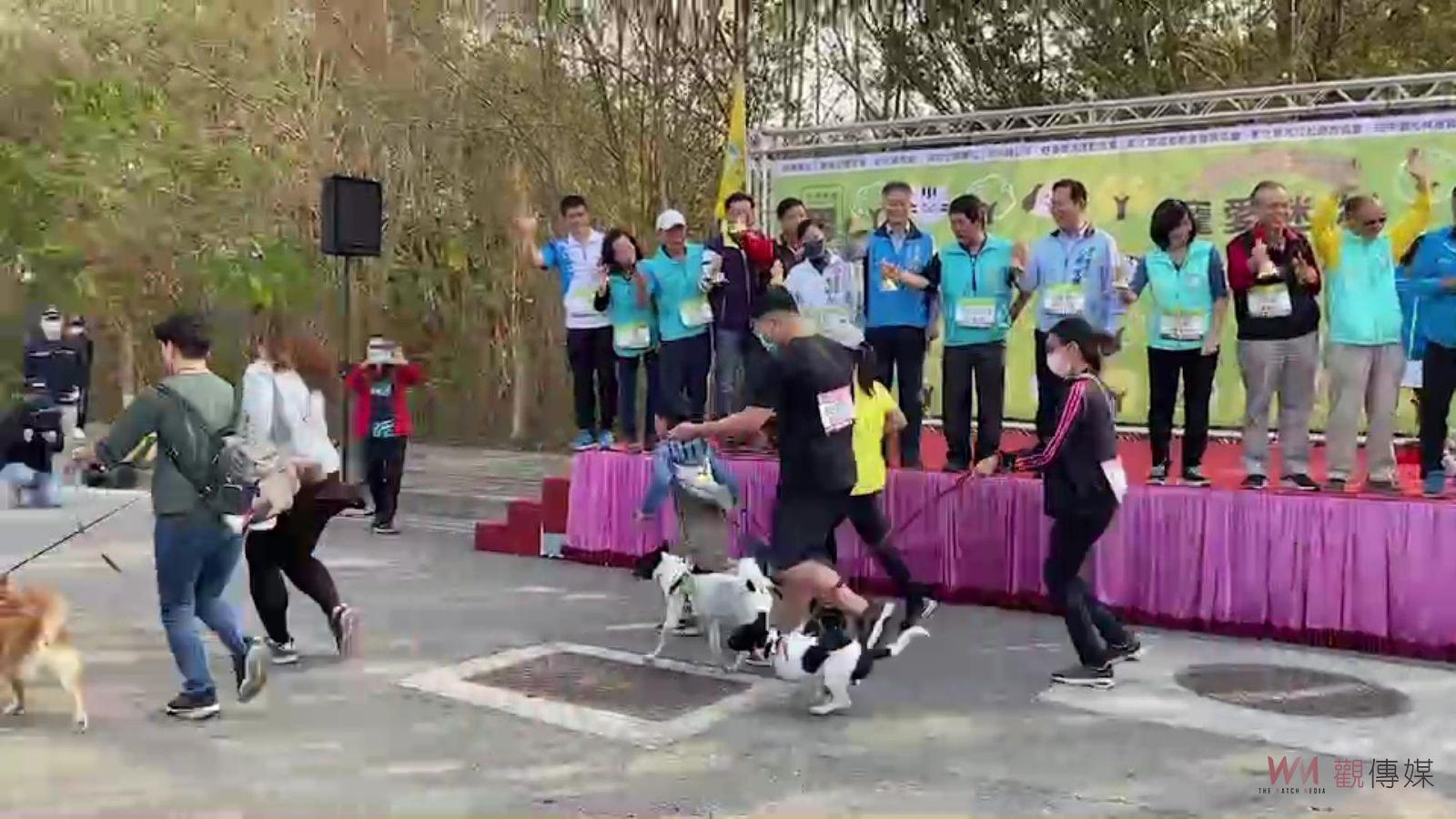 (觀傳媒彰化新聞)【記者陳雅芳/彰化報導】中華民國舒康樂活運動協會與田中鎮公所、田中觀光商圈發展協會,今(12)日共同舉辦「Run For Love寵愛迷你馬拉松」,超過400鄉親攜帶自家寵物到場,彰化縣副縣長林田富、田中鎮長蕭淑芬、縣議員鄭俊雄、田中馬拉松總幹事鄭宗政、觀光商圈理事長許文忠等人主持開跑儀式下登場。