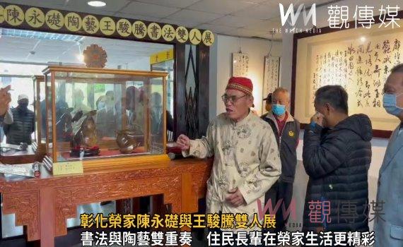 (觀傳媒彰化新聞)【記者陳雅芳/彰化報導】舒緩長輩住民身心靈性,國軍退除役官兵輔導委員會彰化榮譽國民之家「文化藝廊」,今(13)日舉辦「卯兔年—陳永礎陶藝與王駿騰書法雙人展」,特邀請雲林縣知名陶藝家陳永礎與畫法家王駿騰,提供陶藝及書法作品30餘件參展,藉由書法與陶藝的雙重奏,?舒緩疫情壓力讓住民長輩能在榮家頤養精彩的生活。