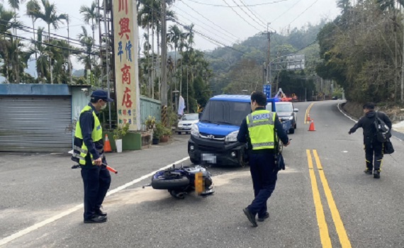 (觀傳媒嘉義新聞)【記者 惲 朋 /嘉義報導】嘉義縣消防局今(19)日12時許,接獲民眾報案指中埔鄉台三線阿婆灣附近發生車禍事故,即派救護人車前往救助,現場發現為嘉義林管處公務車迴轉後與重機發生碰撞,騎士當場没有生命跡象。相關事故發生原因與責任,尚待警方調查釐清。林管處表示,將持續與劉男(重機騎士)家屬保持聯繫給予關懷及協助