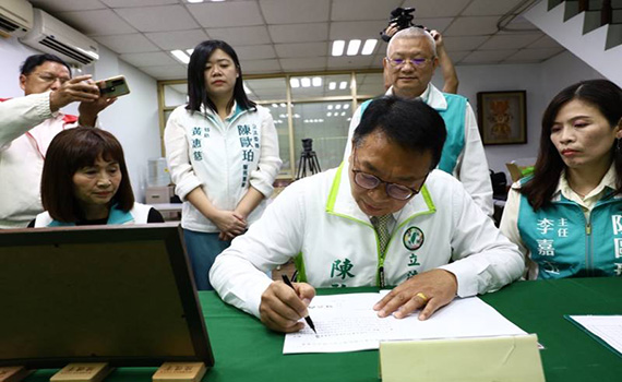 (觀傳媒宜蘭新聞)【記者陳俊傑/宜蘭報導】民進黨立委黨內初選今(20)日起至24日受理登記,現任立委陳歐珀於首日一早就到縣黨部領表登記,他曾經擔任三屆的立法委員,這次參加黨內初選希望爭取四連霸。