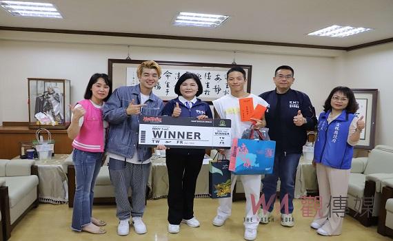 雲林街舞高手林景吾將代表台灣赴法參賽,縣長張麗善今特地接見祝賀,並預祝他到法國拿到好成績為國爭光。