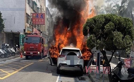 (觀傳媒台南新聞)【記者陳彥霖/台南報導】今(24)日上午11時30分許,溫姓男子前往南市警第二分局南門派出所洽公,車輛停放於南寧街停車格位內,詎料,中午12時15分許,溫男的車子突然起火燃燒,警員見狀立即通報119,同時拿滅火器滅火,幸無人員傷亡。