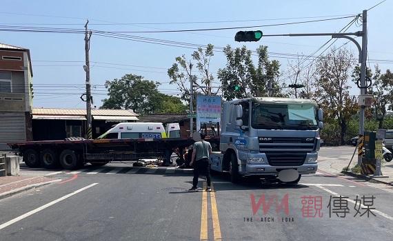 (觀傳媒雲林新聞)【記者蘇榮泉/雲林報導】雲林縣警察局斗六分局於3月24日10時38分許接獲報案,於轄區斗六市鎮北路與斗六二路口發生一起嚴重車禍事故,警方獲報立即派遣交通小隊前往現場處理,駕駛營曳引車撞擊同向直行自行車,致自行車騎士及乘客緊急送往醫院後均宣告不治,營曳引車駕駛經酒測無酒精反應,詳細事故發生原因,警方將深入調查。