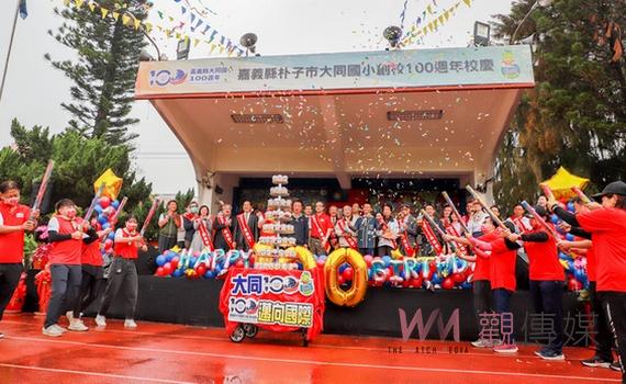 (觀傳媒嘉義新聞)【記者任禮清/嘉義報導】嘉義縣朴子市大同國小4月1日歡慶創校100週年校慶,以「大同100.邁向國際」為主題用心規劃,在校園內舉行國際童玩園遊會及熱鬧市集,在縣長翁章梁見證祝賀下,為傑出校友們頒獎,歡唱生日快樂歌,隆重為百週年校史室進行揭牌,見證大同國小創校百週年的豐富歷史。