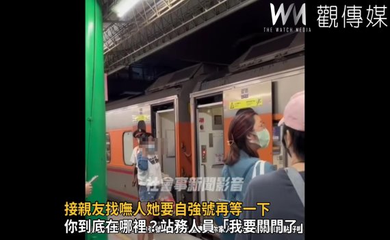 ▲站務人員見旅客都已上下車完畢,向該名女子說「小姐我要關車門,(時間)超過了啊,」。