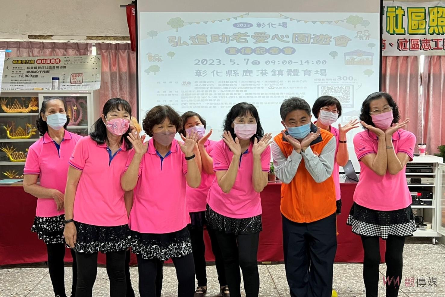 ▲弘道老人福利基金會辦理「第七屆弘道助老愛心園遊會」宣傳會,和美鎮新庄社區發展協會長者活力舞蹈演出,鼓勵社會大眾能一起付出一點愛心做公益。