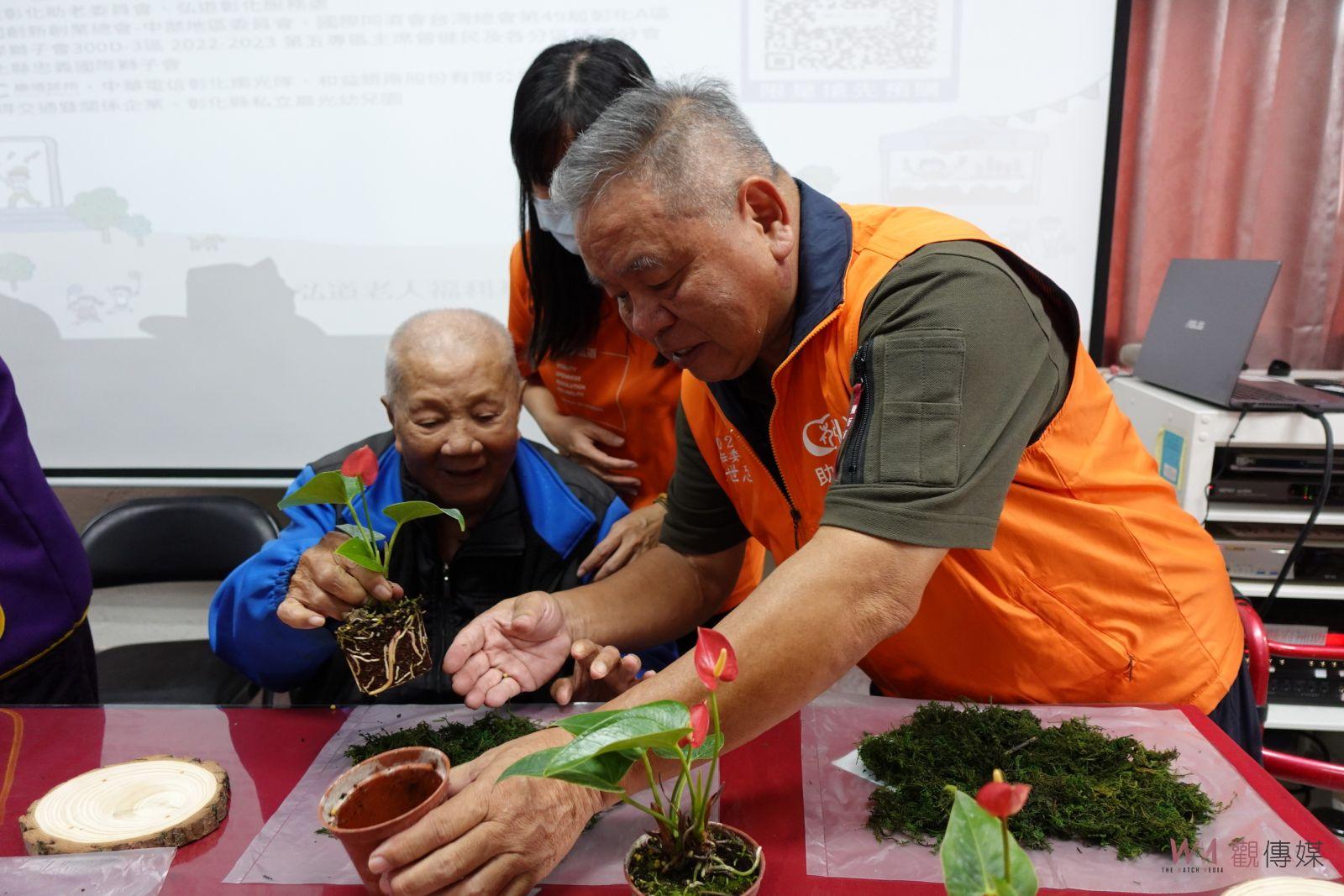 今日宣傳會中,弘道照顧助理陪伴89歲低收的樹欉阿公,及新庄社區黃宏山理事長也帶著年逾九旬的媽媽一同出席參與,與現場貴賓一起手作園藝DIY及體驗童趣闖關,同時也號召民眾5月7日帶著一家老小一起到鹿港體育場參加園遊會。