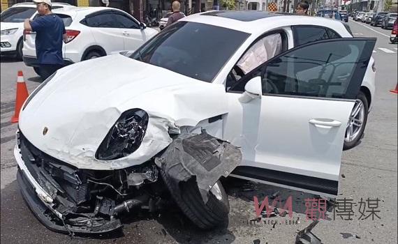 警方指出,1輛保時捷休旅車行駛於興華路上欲左轉建國路,與行駛於興華路上,南向北直行的黑色自小客車,在路口發生碰撞,導致黑車滑行,撞擊停於興華路路旁的自小客車,引發火燒車。