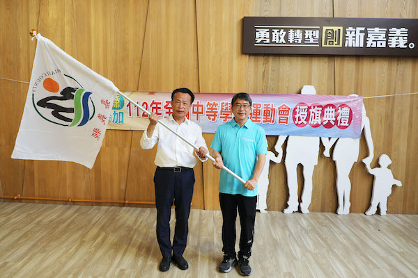 (觀傳媒嘉義新聞)【記者 惲 朋 /嘉義報導】嘉義縣長翁章梁今(17) 日在縣府內授旗永慶中學郭春松校長,期待組隊參加112年全國中等學校運動會,展現嘉義囝仔永不放棄、挑戰自我的堅毅精神,勝不驕、敗不餒,以精湛的技能為嘉義縣爭取最好的成績。