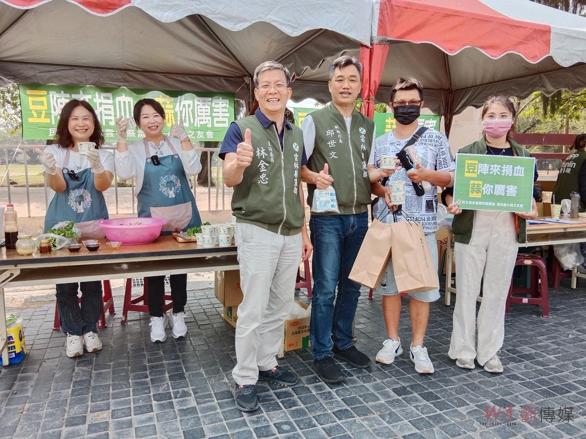 縣黨部林金忠主委表示,響應黨主席賴清德發起「捐血一袋、救人一命」捐血活動,邀請大家挽袖捐血,一起做公益。今日捐血活動提供雲林在地農特產蒜頭跟莿桐的黑蒜頭及豆皮,給來捐血的民眾,除了做公益也幫助在地的農民,很感謝大家挽袖捐熱血。今日也很開心現場看到民眾一起學習製作涼拌豆皮,希望大家踴躍來捐血,幫助需要幫助的人。