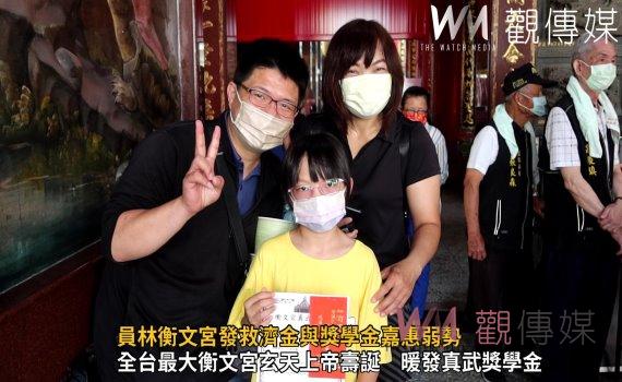 (觀傳媒彰化新聞)【記者陳雅芳/彰化報導】彰化縣員林市以七十二尺高玄天上帝神像聞名全台的衡文宮,今(22)日慶祝玄天上帝聖誕,由衡文宮主任委員兼衡文虔心慈善會理事長陳明仁,舉辦慶祝誕辰儀式,發放員林等五鄉鎮市低收入戶仁愛救濟用品給近120位低收戶救濟品,以及頒發十鄉鎮市國中小、高中職共有350名學生真武獎學金,讓這個慶典熱鬧溫馨又有意義。
