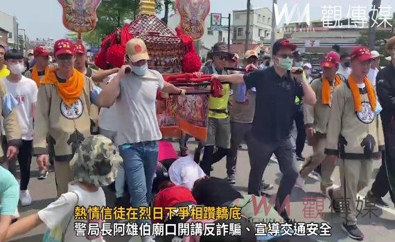 (觀傳媒彰化新聞)【記者陳雅芳/彰化報導】大甲鎮瀾宮媽祖遶境進香活動在彰化市遶境行程嚴重拖延,今(23)日上午沿著台一線一路往南彰化前進,轎班加足馬力,5小時內經過大村鄉,今年信眾暴多,熱情信徒在烈日下排隊躦轎底,讓鑾駕幾乎動彈不了,鎮瀾宮在北斗奠安宮宣布,暫時不開放再讓民眾躦轎底,下午媽祖鑾轎沿古香路進入溪州鄉遶境,晚間駐駕西螺鎮的福興宮。