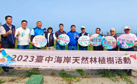 (觀傳媒台中新聞)【記者顏淑娟/台中報導】台中市政府觀旅局為改善大安區長年風沙及海岸線退縮問題,今(23)日上午辦理「2023台中海岸天然林植樹活動」,由台灣山林復育協會進行植樹及護樹解說,並致贈欖仁、水黃皮、白樹仔、海檬果、銀葉樹、樹青、瓊崖海棠、大葉山欖等18種海岸林原生樹種、共800株樹苗,並結合中部汽車公司辦理「淨灘減塑全台總動員活動」,超過千人一同親手參與淨灘、植樹,為環境永續發展貢獻心力。