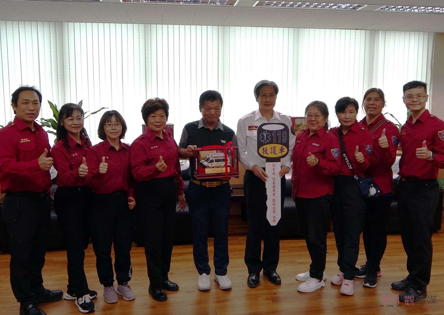 雲林縣消防局今日舉辦救護車捐贈儀式,由局長林文山代表接受,並回贈感謝狀及紀念品。