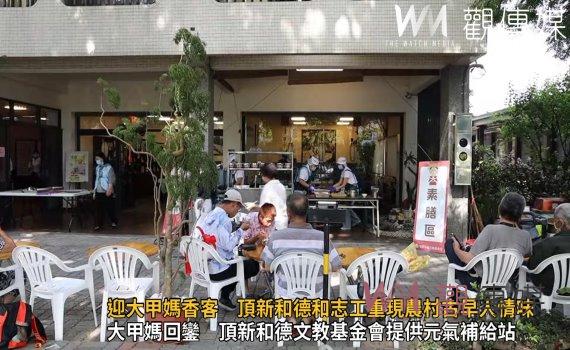 ▲大甲媽遶境進香回鑾,,沿途永靖鄉民輪流提供食物和茶水,頂新和德文教基金會提供元氣補給站,志工們投入迎香客,展現在地濃濃的人情味。