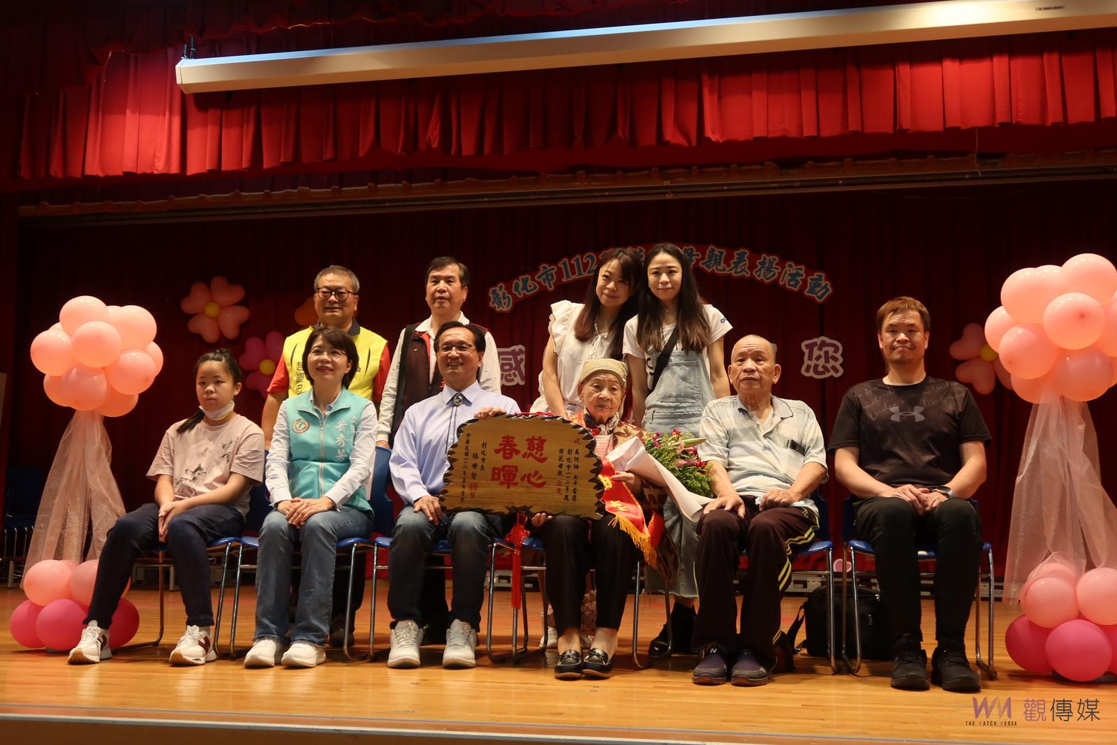 彰化市112年慶祝母親節暨模範母親表揚活動,今(29)日上午9點起在介壽生活藝文館熱鬧舉行,彰化市今年由各里提報接受表揚的模範母親,共有65位,其中有25位、近4成的模範母親年齡在80歲(含)以上,當中19人是85歲(含)以上、90歲(含)以上4人,其中最年長的是住桃源里100歲的人瑞吳阿柚阿嬤。