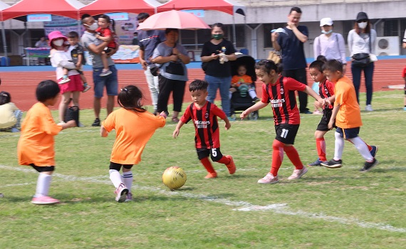 (觀傳媒南投新聞)【記者石振賢/南投報導】邁入第四屆的「南投縣112年璉紅盃五人制幼兒足球錦標賽」29日在縣立體育場盛大登場,有來自縣內25所公私立幼兒園共49隊參賽,參加隊職員人數逾500多人,小小球員們在燦爛的陽光下,展現球技,爭取佳績,球場中你來我往,競爭相當激烈,場面歡樂有趣。