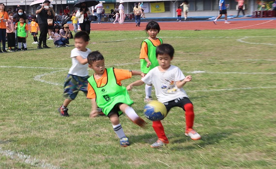 ▲投縣幼兒足球錦標賽登場 25校49隊選手開心競技。