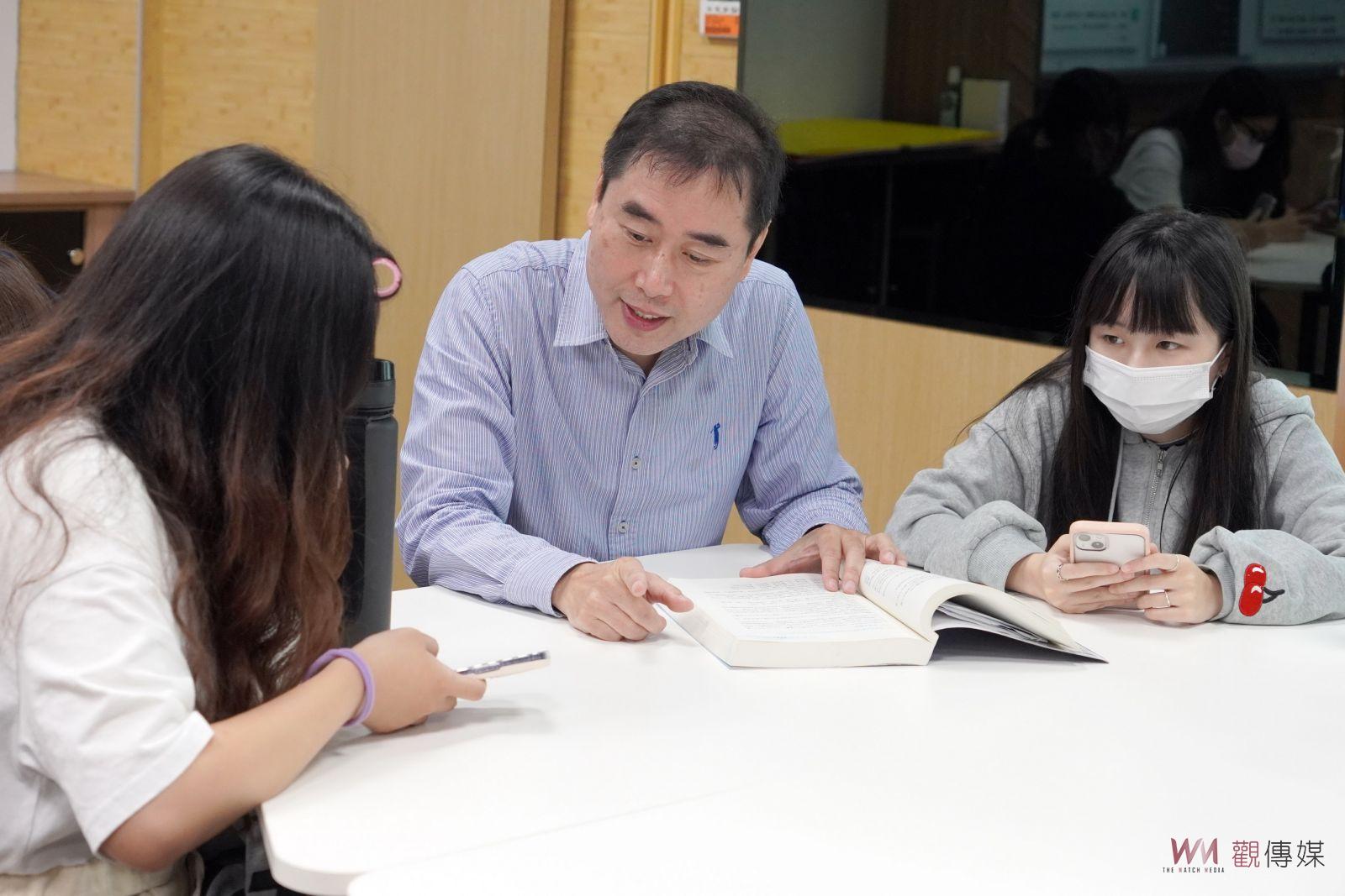 ▲大葉大學資管系學生與吳為聖老師(左)討論人工智慧應用。