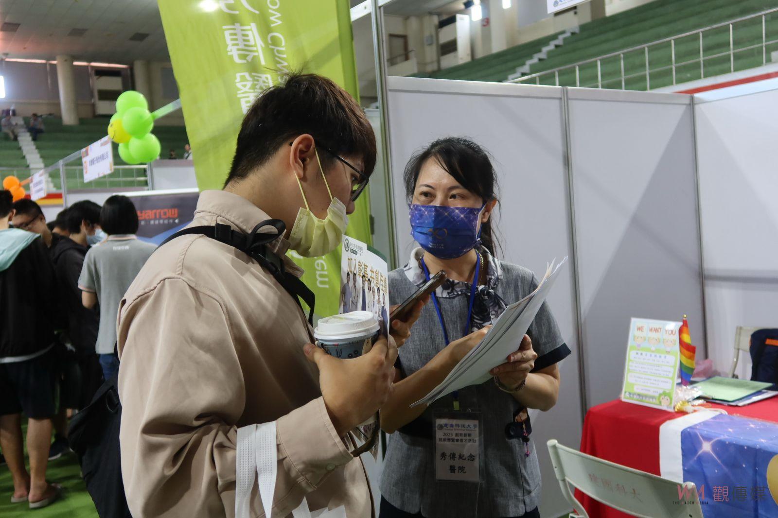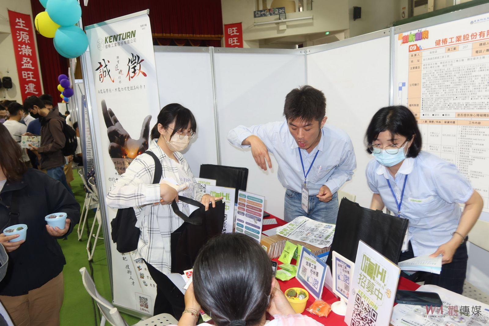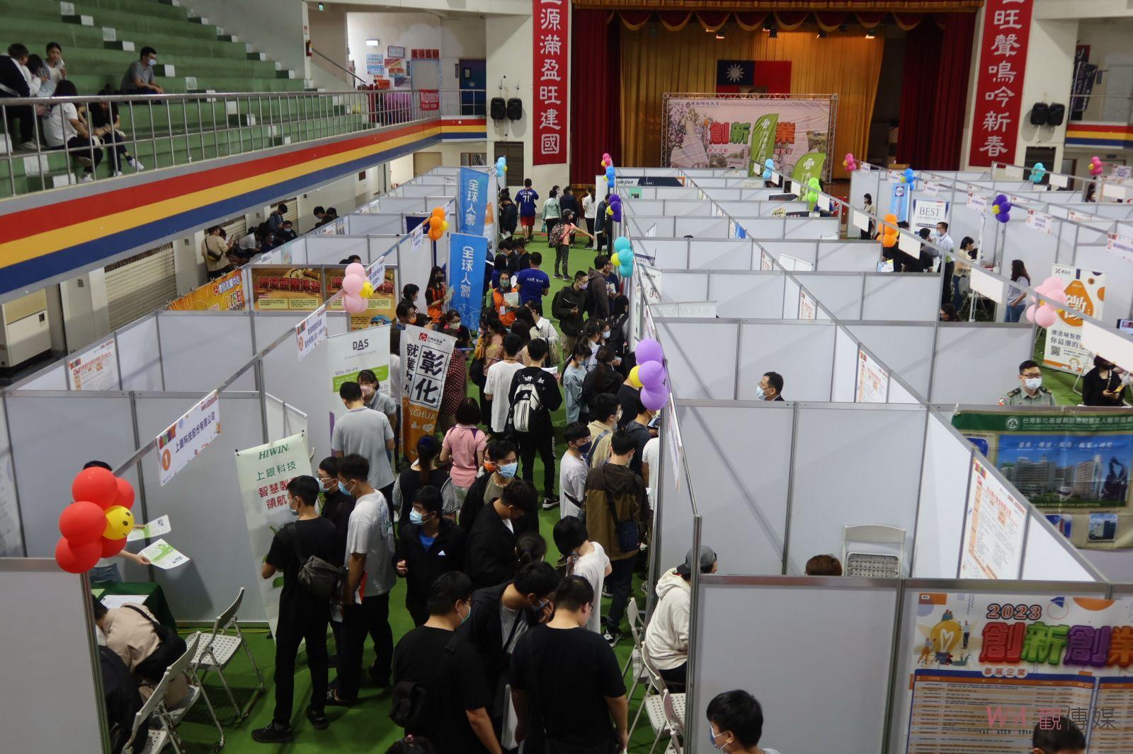 (觀傳媒彰化新聞)【記者陳雅芳/彰化報導】疫情後,國內百工百業大鬧人力荒!建國科技大學今(4)舉辦「2023創新創業就業博覽會」,邀請53家廠商參與,提供數百個專任職缺,應屆畢業生到場應徵踴躍,截至下午2點,媒合成功有500件,媒合率約5成。除了為應屆畢業生媒合工作,校方也特別安排大三學生到場,期望藉此讓學生能提早了解未來就業市場所需。