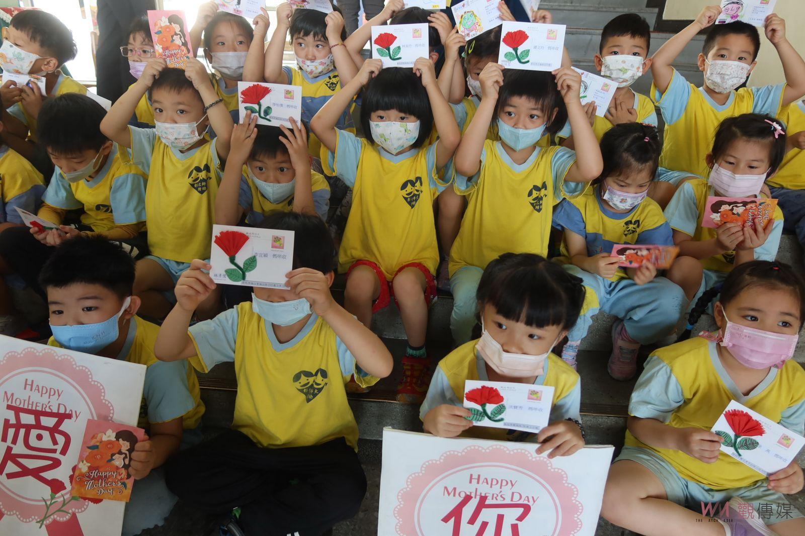 ▲彰化郵局在彰師大幼兒園辦理「媽媽我愛您」母親節活動,彰師大幼兒園的小朋友透過手寫或手繪明信片,向他們最愛的媽咪表達愛意。