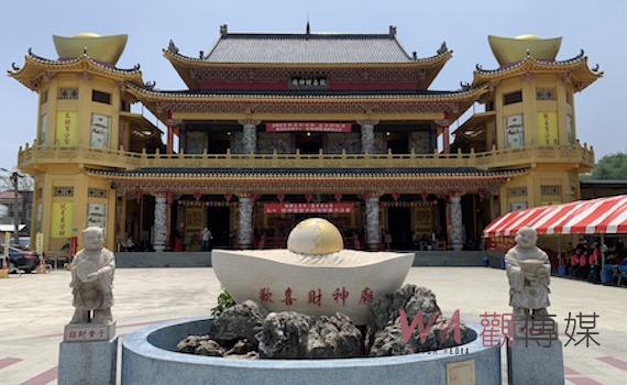 (觀傳媒嘉義新聞)【記者 惲 朋 /嘉義報導】嘉義縣中埔鄉歡喜財神廟搭起文創風熱潮,首創結合1200年前唐宋八大家之首韓愈的「送窮文」,設計出打破傳統印象的「天地人、三財聚」全新檜木杯筊,五顏六色時尚感,也讓與神溝通的「神器」變得更神氣。廟方將應用在借還發財母錢的擲杯儀式中;嘉義縣長翁章梁今(4)日受邀許願「開杯」。他說:歡喜財神廟設計、重新詮釋也代表宮廟文化逐漸走向進步,融合傳統及現代,值得分享給大家。