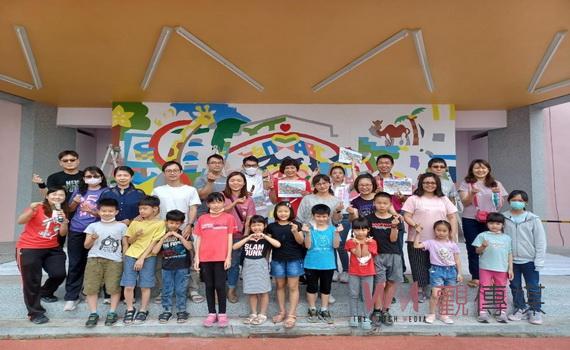 ▲校方動員家長與老師,在假日權充最佳男女配角上陣的完成彩繪牆的雛型。
