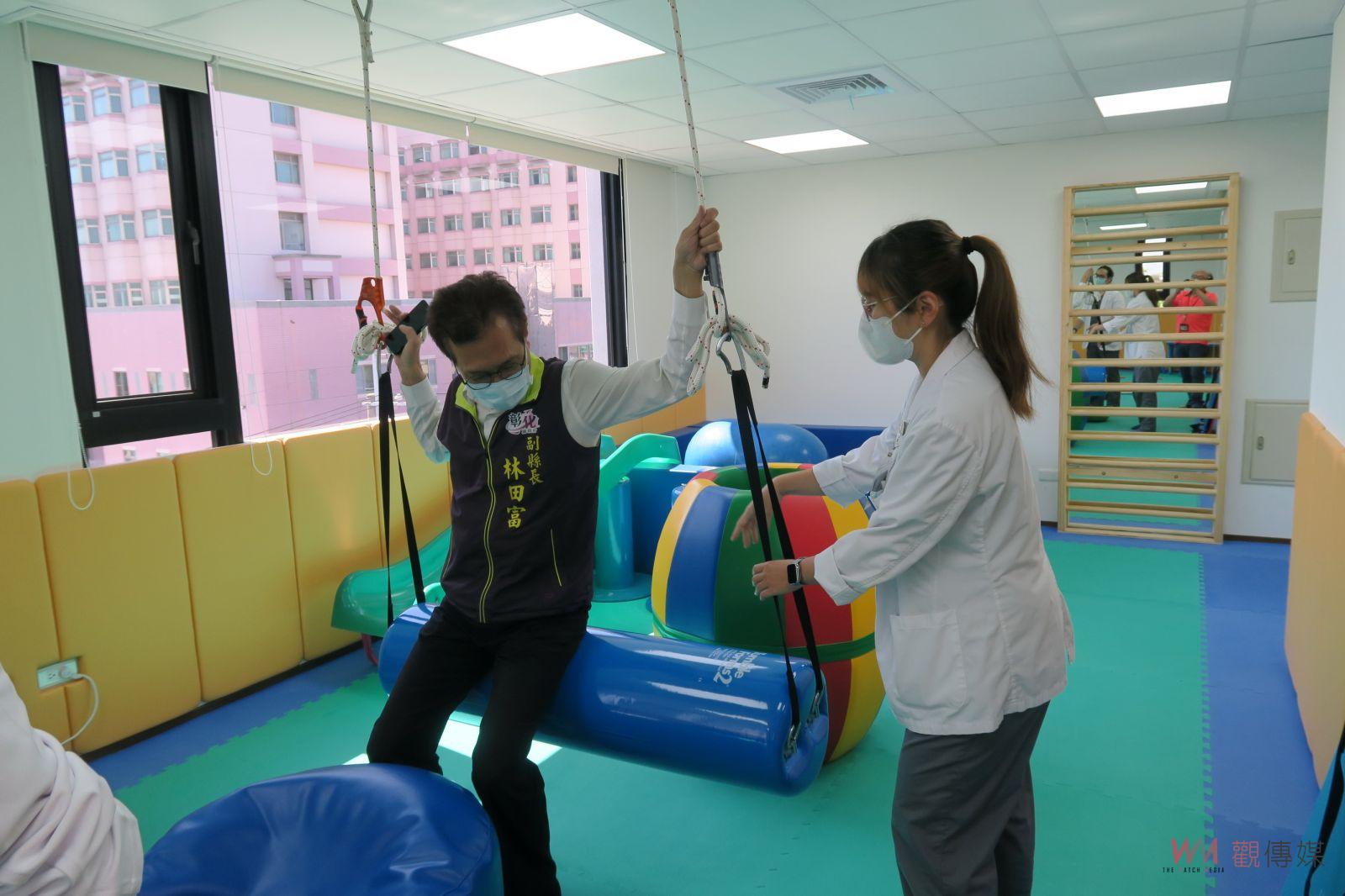 彰化醫院復健科主任廖宜新表示,台灣兒童發展遲緩發生率6%至8%,彰醫門診收治兒童很多超過4歲以上,雖然6歲以下是黃金治療期但越早越好,最好兩歲以上就接受療育,全新復健中心除了原有的早療設備教具。