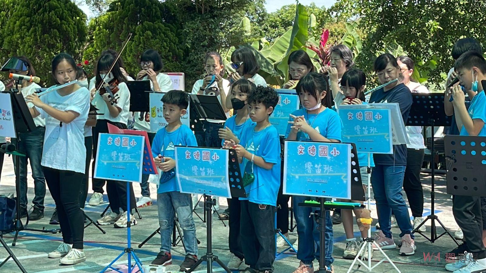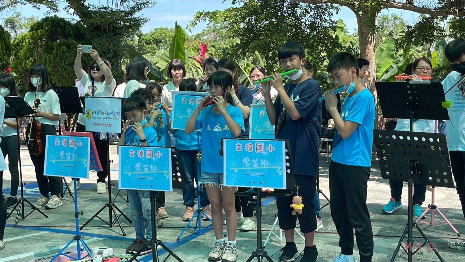 黃秀玉表示,文德社區響笛班是由文德國小的學生及家長和社區對音樂有興趣的民眾,利用假日時間來一起學習,並透過展演的方式展現學習成果,同時也散播音樂的歡樂,這次活動一號召,便獲得各界的支持,也有理髮店今天不克參加,提前來為長輩義剪,另外送上花束、水果、蛋糕的單位也是很多!