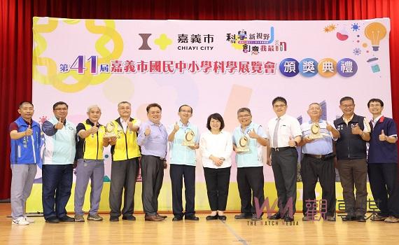 (觀傳媒嘉義新聞)【記者吳東林/嘉市報導】嘉義市第41屆國民中小學科學展覽會於10日於蘭潭國中活動中心辦理頒獎典禮,本年度科展作品計有國小組90件、國中組100件,合計190件作品參賽,經過4月13日的初審及4月27日的複審,共計有122件作品脫穎而出,學生421人次獲獎。嘉義市長黃敏惠特別出席為學生頒獎,勉勵學生們永保好奇的心,勇於探索世界,多位市議員及關心教育的各界貴賓亦到場為學生送上祝福與鼓勵。