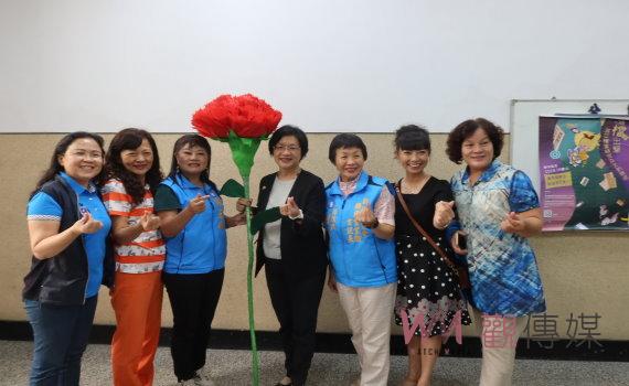 ▲彰化縣議員陳玉姬準備巨型康乃馨,與彰化縣長王惠美及議員們一起向天下的媽媽致敬,也提醒大家愛要及時,祝福天下媽媽,母親節快樂。