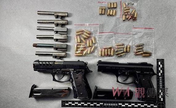 虎尾警緝獲亡命鴛鴦並起獲改造手槍2把、子彈39顆及毒品等證物。